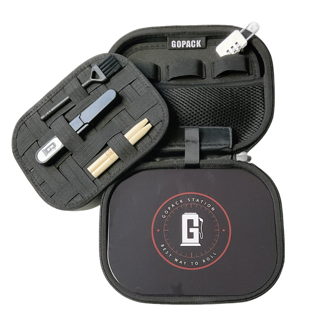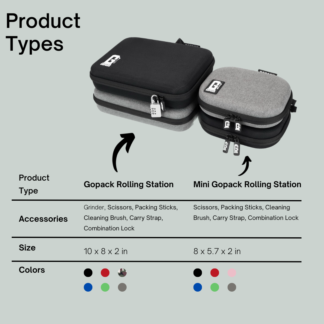 Our Gopack Rolling Station are made with our custom molded interior to hold our rolling tray sets, plenty of storage, and accessories