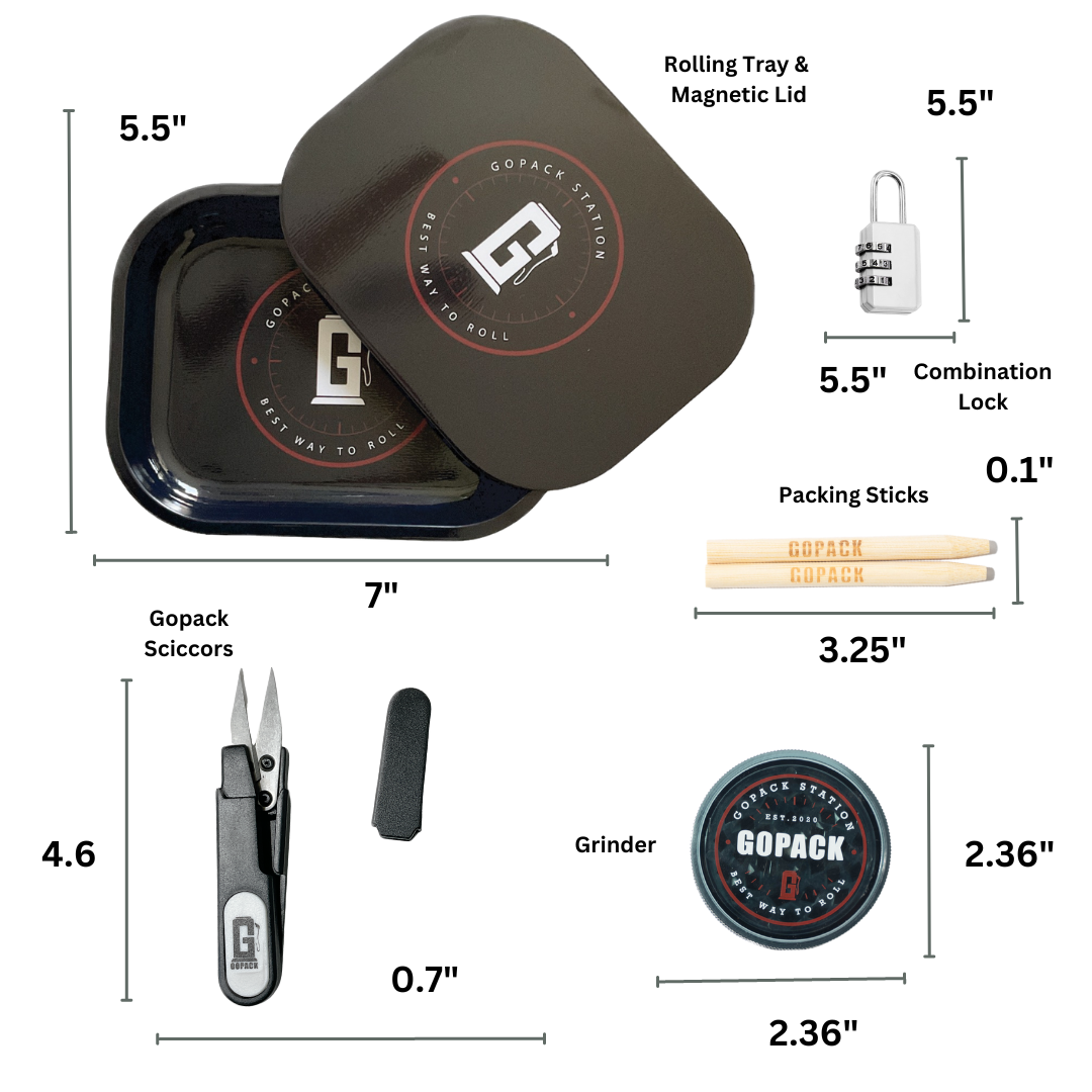 The GOPACK Mini Rolling Tray Kit is not just a storage solution; it's a testament to thoughtful design and practicality, perfect for individuals who prioritize organization, discretion, and elegance. Whether for your herbal necessities or everyday items, this kit ensures you're equipped for whatever the day holds. Elevate your organization game and embrace a blend of sophistication and functionality with the GOPACK Mini Rolling Tray Kit – the quintessential accessory for the refined, active lifestyle.